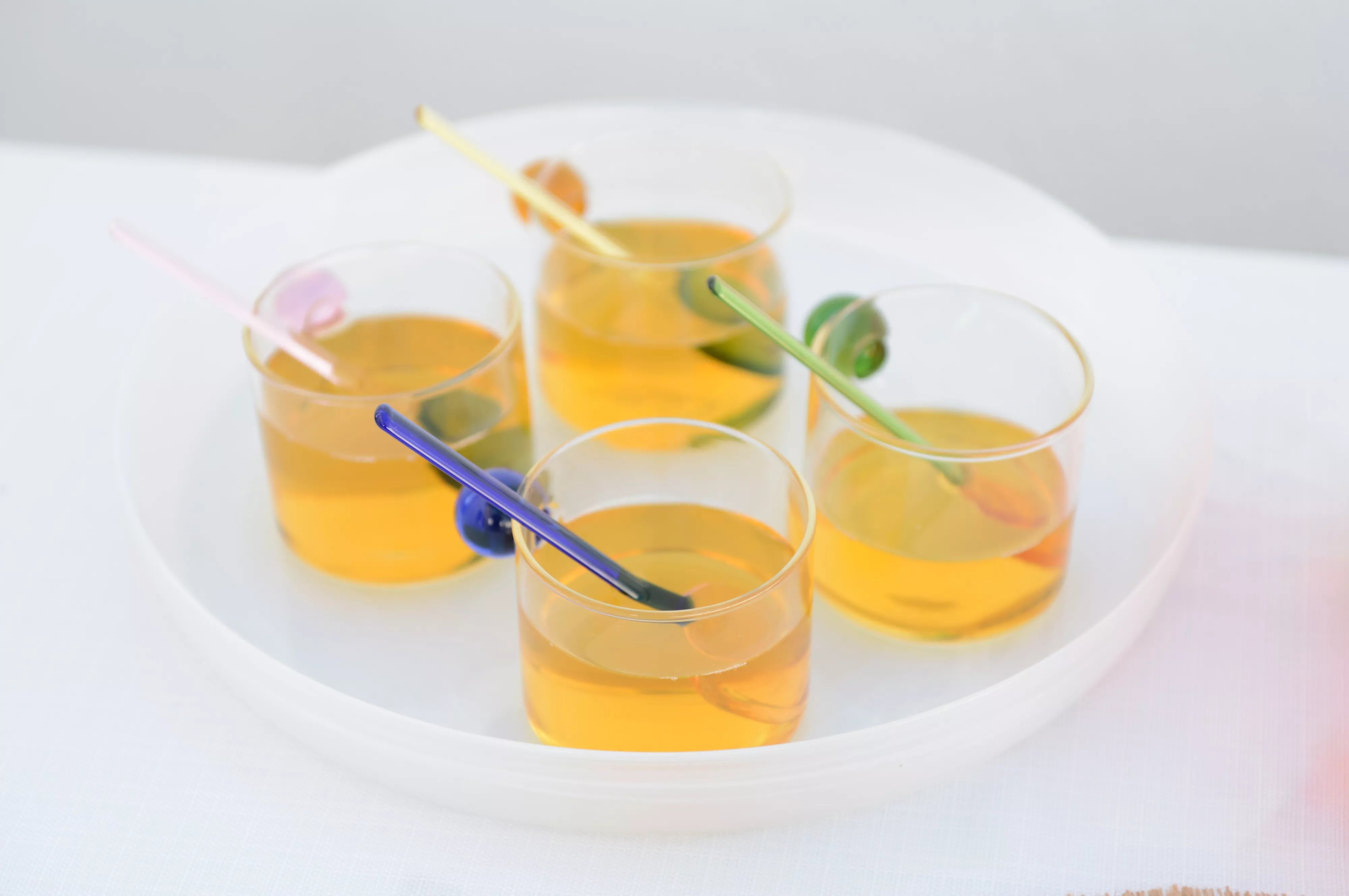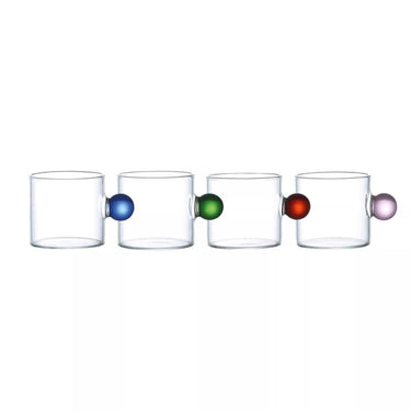 Lot de 4 mugs en verre avec poignée boule colorée d'une capacité de 350ml - AULICA